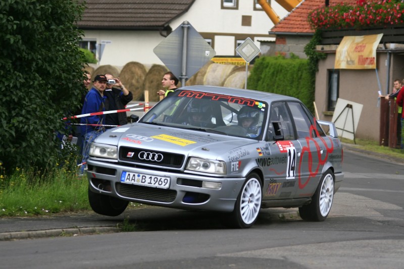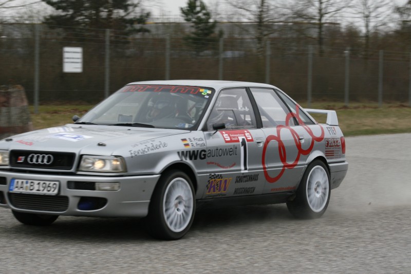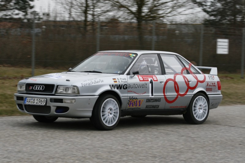 Der Wetterbericht prophezeite leichter Regen für den Nachmittag, die Fruck-Brüder setzten auf Grund der starken Konkurrenz in der Klasse auf Risiko und fuhren mit Semi-Slicks aus dem Startpark. Auf der ersten Etappe sollten 3 Wertungsprüfungen zu fahren sein, allerdings wurde die zweite WP nicht gewertet weil die Feuerwehr wegen eines Verkehrunfalls abgezogen werden musste. Trotz der langen Pause gewöhnte sich Pilot Bernd Fruck schnell an das Auto, das Team konnte sich nach der ersten Etappe in den Top 10 halten und lagen nur 0,8 Sekunden hinter dem führenden in Klasse. Die gleichen WPs wurden auch auf der zweiten Etappe gefahren und weil das Wetter hielt konnten die Frucks noch mal das Tempo steigern. Mit den Klassenbestzeiten auf WP 4 und WP 5 eroberten sie vorläufig die Klassenführung. Die letzte Wertungsprüfung verhagelte dann den tollen Saisoneinstand. Ausgerechnet in der letzten Runde der sechsten WP streikte die Benzinpumpe und der Urquattro schleppte sich stotternd durchs Ziel. Trotz des beinahe Ausfalls schafften die Frucks den zweiten Platz in Klasse und einen 15. Gesamtrang.